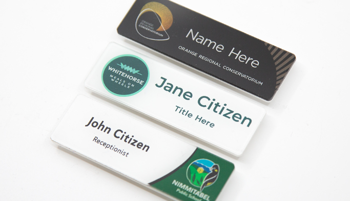 All badges are supplied with a choice of magnetic or pin backs for easy fastening.